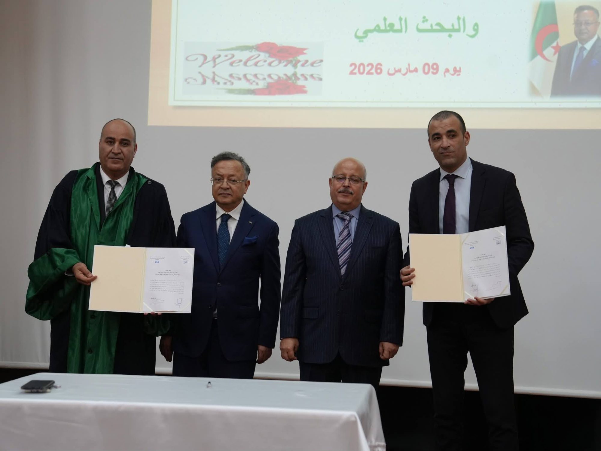 Signing of Partnership Agreements during the Visit of the Minister of Higher Education and Scientific Research During his visit on March 9, 2026, Kamel Baddari, Minister of Higher Education and Scientific Research, presided, alongside the Governor (Wali) of Aïn Defla and the accompanying delegation, over the ceremony for the signing of several partnership agreements between the University of Djilali Bounaama Khemis Miliana and various economic institutions. These agreements were signed by the Rector of the university, Professor Berrabah Mohamed Cheikh, as part of efforts to strengthen cooperation between the university and its economic and social environment. The agreements include: A partnership agreement between Djilali Bounaama Khemis Miliana University and Maghreb Tubes SPA. A partnership agreement between Djilali Bounaama Khemis Miliana University and the National Agency for the Management of Microcredit (ANGEM). A partnership agreement between Djilali Bounaama Khemis Miliana University and Saidal Group. These agreements are part of the university’s efforts to strengthen innovation and reinforce its openness to the economic environment. They aim to support innovative projects, encourage the entrepreneurial spirit among students, assist start-ups, and promote the valorization of scientific research outcomes.