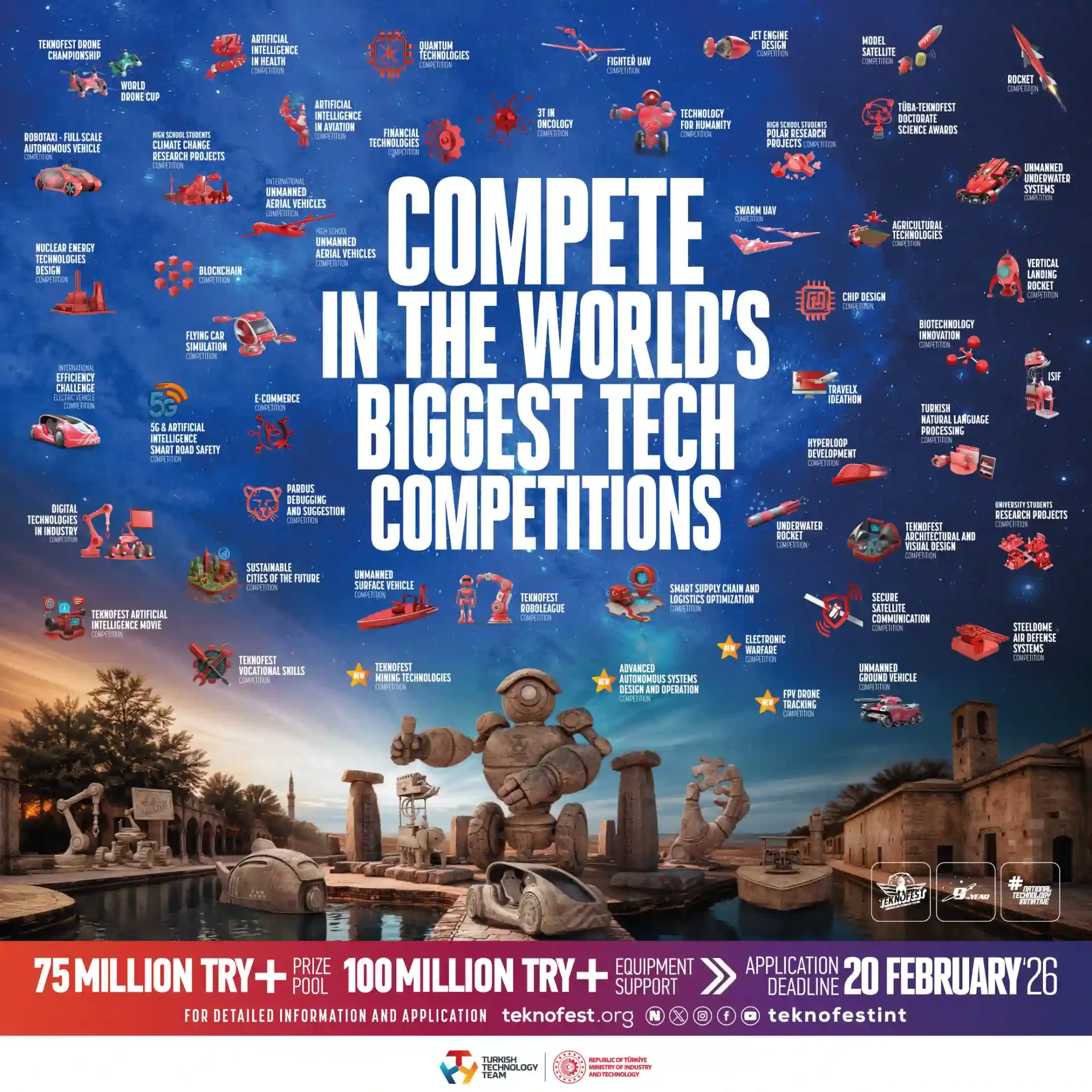 Call for Participation in the TEKNOFEST2026 Aviation and Technology Festival in Turkey / International competitions, International offers / By rahim khial Call for Participation in the TEKNOFEST2026 Aviation and Technology Festival in TurkeyCall for Participation in the TEKNOFEST2026 Aviation and Technology Festival in Turkey, from September 30th to October 4th, 2026. The registration deadline is February 20th, 2026.