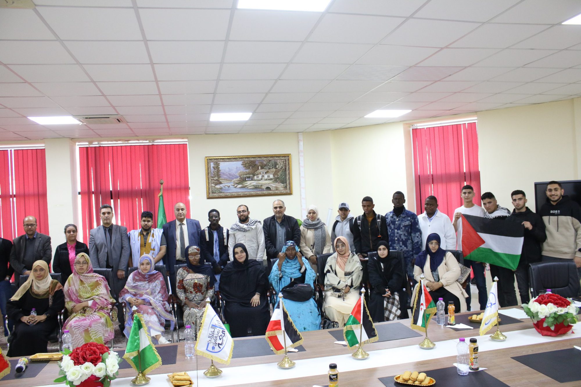Célébration en l’honneur des étudiants internationaux inscrits à l’Université Djilali Bounaama – Khemis Miliana Conformément aux directives du ministère de l’Enseignement supérieur et de la Recherche scientifique, et dans le cadre de la célébration du programme MARHABA DAY, destiné à promouvoir l’ouverture et les échanges culturels au sein du milieu universitaire, une cérémonie a été organisée sous la supervision du recteur de l’université, le Prof. Dr. Brabah Mohamed Cheikh, en présence de : la Vice-rectrice chargée des relations extérieures et de la coopération, Prof. Dr. Ben Djilali Fella, le Vice-recteur chargé de la pédagogie, Prof. Dr. Morad Moudaris, la Secrétaire générale de l’université, le Responsable du Centre d’enseignement intensif des langues, Dr. Habiche Ben Youcef. La cérémonie s’est tenue dans la soirée de ce mercredi 19 novembre 2025, au niveau du rectorat, en l’honneur des étudiants internationaux, dans une ambiance empreinte de fraternité, de proximité culturelle et d’échanges spontanés entre les étudiants et les responsables de l’Université Djilali Bounaama – Khemis Miliana. Les activités de cette rencontre de bienvenue ont porté sur la présentation des différentes facilités administratives et pédagogiques offertes aux étudiants internationaux afin de favoriser leur intégration au sein de l’université et de répondre à leurs préoccupations, dans le but d’assurer une formation de qualité et un parcours académique optimal.